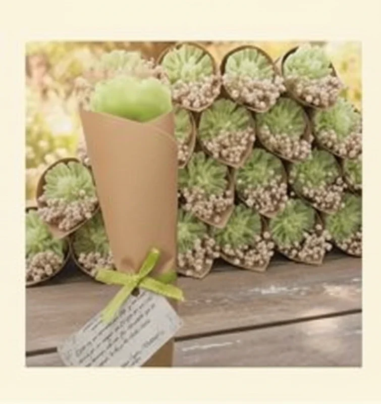 Cada pieza es elaborada a mano, perfecta para detalles naturales y sostenibles en eventos o celebraciones especiales.